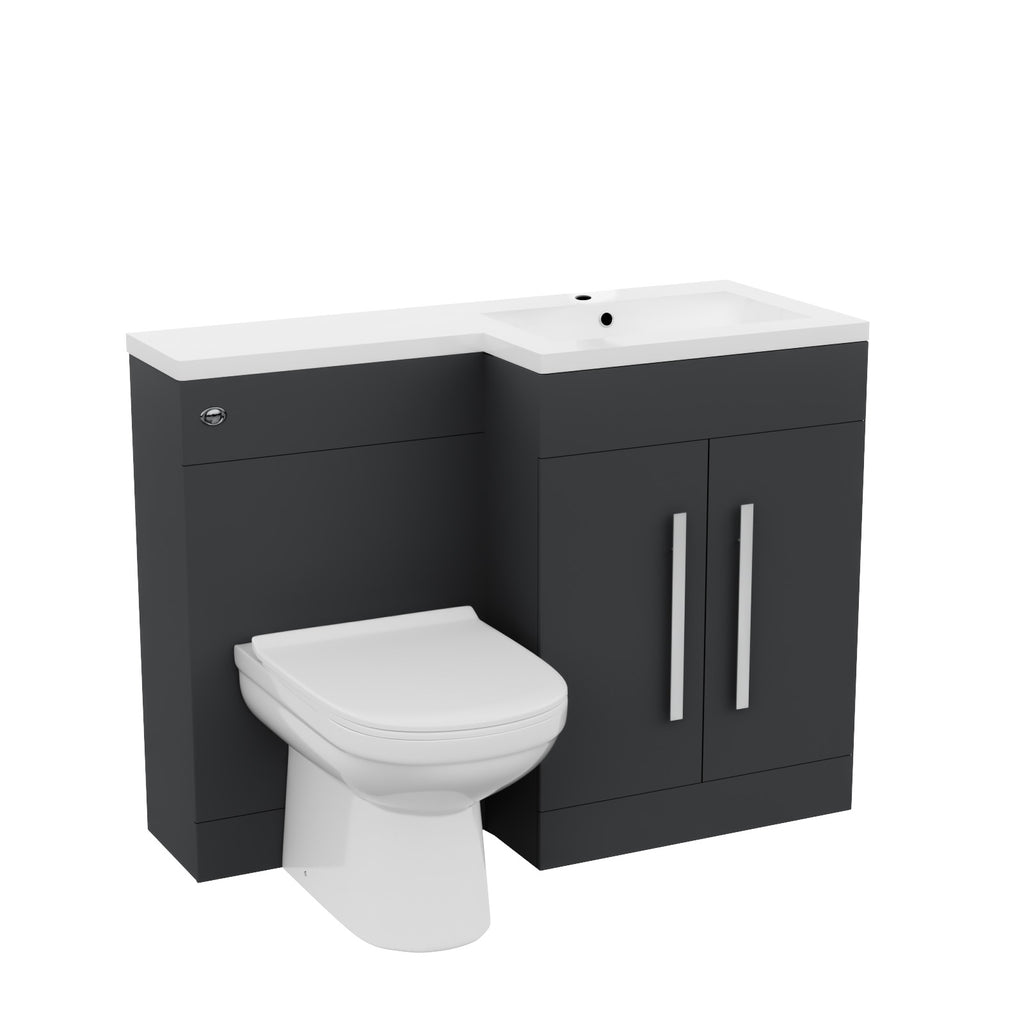 {"id":14988538184056,"title":"1100mm Right Hand Dark Matte Grey Basin Vanity WC Unit \u0026 Toilet","handle":"1100mm-right-hand-dark-matte-grey-basin-vanity-wc-unit-toilet","description":"\u003cp\u003eThis 1100mm Right Hand Dark Matte Grey Basin Vanity WC Unit \u0026amp; Back To Wall Toilet features a white resin basin top, with a two door water resistant MDF cabinet and WC unit and contemporary chrome effect handles, bringing a modern look to your bathroom. The basin includes an overflow and one tap hole. The contemporary design hides all unsightly pipework creating a neat clean look. Please Note: This package comes with a 10 year guarantee.\u003c\/p\u003e\n\n\u003cp\u003e\u003cb\u003eKey Features\u003c\/b\u003e\u003c\/p\u003e\n\u003cul\u003e\n \u003cli\u003eThis design is perfect for renewing the style in any modern or traditional bathrooms where space is limited\u003c\/li\u003e\n \u003cli\u003eIt's stylish modern design hides all unsightly pipework creating a neat modern look \u003c\/li\u003e\n \u003cli\u003e100% water resistant MDF construction for the vanity\u003c\/li\u003e\n \u003cli\u003eFloor standing vanity unit and basin for elegant design\u003c\/li\u003e\n \u003cli\u003eSleek design back to wall toilet\u003c\/li\u003e\n \u003c\/ul\u003e\n\n\u003cdiv class=\"row specification s5\"\u003e\n\n \u003cdiv class=\"spec\"\u003e\n \u003cp\u003e\u003cb\u003eVanity Unit\u003c\/b\u003e\u003c\/p\u003e\n \u003cul\u003e\n \u003cli\u003eStyle: Contemporary\u003c\/li\u003e\n \u003cli\u003eWidth: 1100mm\u003c\/li\u003e\n \u003cli\u003eProjection: 450mm\u003c\/li\u003e\n \u003cli\u003eHeight: 850mm\u003c\/li\u003e\n \u003cli\u003eUnit Type: 2 door cabinet toilet unit\u003c\/li\u003e\n \u003cli\u003eFinish: Dark Matte Grey\u003c\/li\u003e\n \u003cli\u003eMaterial: Water resistant MDF\u003c\/li\u003e\n \u003cli\u003eHandles: Chrome finish\u003c\/li\u003e\n \u003cli\u003eDoor hinges: Soft close hinges\u003c\/li\u003e\n \u003cli\u003eTap holes: 1\u003c\/li\u003e\n \u003c\/ul\u003e\n \u003c\/div\u003e\n \n \u003cdiv class=\"spec\"\u003e\n \u003cp\u003e\u003cstrong\u003eIntegrated Top with Basin\u003c\/strong\u003e\u003c\/p\u003e\n \u003cul\u003e\n \u003cli\u003eMaterial: Resin\u003c\/li\u003e\n \u003cli\u003eWidth: 1100 mm\u003c\/li\u003e\n \u003cli\u003eDepth: 450 mm\u003c\/li\u003e\n \u003cli\u003eColour: White\u003c\/li\u003e\n \u003c\/ul\u003e\n \u003c\/div\u003e\n \n \u003cdiv class=\"spec\"\u003e\n \u003cp\u003e\u003cb\u003eWC Unit\u003c\/b\u003e\u003c\/p\u003e\n \u003cul\u003e\n \u003cli\u003eMaterial: MDF\u003c\/li\u003e\n \u003cli\u003eWidth: 500 mm\u003c\/li\u003e\n \u003cli\u003eHeight: 850 mm\u003c\/li\u003e\n \u003cli\u003eColour: Dark Matte Grey\u003c\/li\u003e\n \u003cli\u003eFinish: Matte\u003c\/li\u003e\n \u003c\/ul\u003e\n \u003c\/div\u003e\n \n \u003cdiv class=\"spec\"\u003e\n \u003cp\u003e\u003cstrong\u003eBack To Wall Toilet\u003c\/strong\u003e\u003c\/p\u003e\n \u003cul\u003e\n\u003cli\u003eMaterial: Ceramic\u003c\/li\u003e\n\u003cli\u003eWidth: 350mm \u003c\/li\u003e\n\u003cli\u003eHeight: 395mm \u003c\/li\u003e\n\u003cli\u003eProjection: 540mm\u003c\/li\u003e\n\u003cli\u003eSeat type: Soft Close\u003c\/li\u003e\n\u003cli\u003eFinish: High gloss glaze white finish\u003c\/li\u003e\n \u003c\/ul\u003e\n \u003c\/div\u003e\n \n \u003cdiv class=\"spec\"\u003e\n \u003cp\u003e\u003cstrong\u003ePackage Contents\u003c\/strong\u003e\u003c\/p\u003e\n \u003cul\u003e\n \u003cli\u003e1 x Vanity Unit\u003c\/li\u003e\n \u003cli\u003e1 x Integrated Resin Top with Basin\u003c\/li\u003e\n \u003cli\u003e1 x WC Unit\u003c\/li\u003e\n\u003cli\u003eBack to wall toilet\u003c\/li\u003e\n\u003cli\u003eToilet pan fittings\u003c\/li\u003e\n\u003cli\u003eConcealed cistern\u003c\/li\u003e\n \u003cli\u003e\u003cstrong\u003e\u003cspan style=\"color: #ff0000;\"\u003eExcludes basin tap and waste\u003c\/span\u003e\u003c\/strong\u003e\u003c\/li\u003e\n \u003c\/ul\u003e\n \u003c\/div\u003e\n \u003c\/div\u003e","published_at":"2025-11-26T16:02:54+00:00","created_at":"2025-11-26T16:02:49+00:00","vendor":"Nes Home","type":"Suite - Basin \u0026 Toilet - Vanity \u0026 WC Unit","tags":["back to wall wc unit","Dark Matte Grey","doors","freestanding vanity unit","mdf","suites","vanity basin","vanity toilet combo","width:1100"],"price":37999,"price_min":37999,"price_max":37999,"available":false,"price_varies":false,"compare_at_price":null,"compare_at_price_min":0,"compare_at_price_max":0,"compare_at_price_varies":false,"variants":[{"id":55372701663608,"title":"Default Title","option1":"Default Title","option2":null,"option3":null,"sku":"LILI110MG-R+N201","requires_shipping":true,"taxable":true,"featured_image":null,"available":false,"name":"1100mm Right Hand Dark Matte Grey Basin Vanity WC Unit \u0026 Toilet","public_title":null,"options":["Default Title"],"price":37999,"weight":1000000,"compare_at_price":null,"inventory_management":"shopify","barcode":"6115036289368","requires_selling_plan":false,"selling_plan_allocations":[]}],"images":["\/\/neshome.co.uk\/cdn\/shop\/files\/LILI110MG-R_2BN201.jpg?v=1764172973","\/\/neshome.co.uk\/cdn\/shop\/files\/LILI110MG-R_2BN201-1.jpg?v=1764172972","\/\/neshome.co.uk\/cdn\/shop\/files\/LILI110MG-R_2BN201-2.jpg?v=1764172972","\/\/neshome.co.uk\/cdn\/shop\/files\/LILI110MG-R_2BN201-3.jpg?v=1764172972","\/\/neshome.co.uk\/cdn\/shop\/files\/LILI110MG-R_2BN201-4.jpg?v=1764172972","\/\/neshome.co.uk\/cdn\/shop\/files\/LILI110MG-R_2BN201-5.jpg?v=1764172972","\/\/neshome.co.uk\/cdn\/shop\/files\/RIGHT-LILI-dimensions_96befa00-e264-489f-90a6-c46bbe7892f9.jpg?v=1764172972","\/\/neshome.co.uk\/cdn\/shop\/files\/N-201-dimensions-1600x1600_536b80d3-1db4-4af4-937f-ae2f1ab8bdd8.jpg?v=1764172972"],"featured_image":"\/\/neshome.co.uk\/cdn\/shop\/files\/LILI110MG-R_2BN201.jpg?v=1764172973","options":["Title"],"media":[{"alt":null,"id":65318091260280,"position":1,"preview_image":{"aspect_ratio":1.0,"height":1600,"width":1600,"src":"\/\/neshome.co.uk\/cdn\/shop\/files\/LILI110MG-R_2BN201.jpg?v=1764172973"
