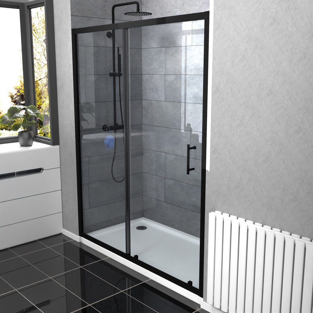 {"id":8069434245344,"title":"Magna 1400mm Sliding Glass Screen Shower Door Matte Black","handle":"magna-black-matt-6mm-sliding-door-1400-x-1850-mm","description":"\u003cp\u003eMade from 1 mm aluminum profile and coated in a modern stylish matte black finish along with stainless steel handles. The glass panels on the shower enclosure are created from 6 mm tempered clear glass.\n\nThe elegant shower door has a 40 mm wall adjustment for when the walls are slightly out.\u003c\/p\u003e\n\n\u003ch3\u003eKey Features\u003c\/h3\u003e\n\u003cul\u003e \u003cli\u003eConcealed design sliding shower enclosure cubicle door\u003c\/li\u003e \u003cli\u003eThe sliding door is manufactured from 6mm toughened tempered safety glass\u003c\/li\u003e \u003cli\u003eModern matte black finish profile\u003c\/li\u003e \u003cli\u003eStrong build push release double rollers for smooth operation\u003c\/li\u003e \u003cli\u003eQuick release door system, easy removable wheels for easy cleaning\u003c\/li\u003e \u003cli\u003eQuality finish ensuring long term durability\u003c\/li\u003e \u003cli\u003ePassed multi waterproof tests - the best waterproof guarantee\u003c\/li\u003e \u003cli\u003ePower shower proof\u003c\/li\u003e \u003cli\u003eUniversal; left or right hand fitting\u003c\/li\u003e \u003cli\u003e40mm out of line inward wall adjustment for out of plumb\/true walls\u003c\/li\u003e \u003c\/ul\u003e\n\n\u003cdiv class=\"row specification s2\"\u003e \u003cdiv class=\"spec\"\u003e \u003cp\u003e\u003cb\u003eSpecification\u003c\/b\u003e\u003c\/p\u003e \u003cul\u003e \u003cli\u003eStyle: Modern\u003c\/li\u003e \u003cli\u003eDoor Type: Sliding\u003c\/li\u003e \u003cli\u003eMaterial: Aluminum\u003c\/li\u003e \u003cli\u003eColour: Black\u003c\/li\u003e \u003cli\u003eFinish: Matte\u003c\/li\u003e \u003cli\u003eHeight: 1850 mm\u003c\/li\u003e \u003cli\u003eWidth: 1350-1390 mm\u003c\/li\u003e \u003cli\u003eGlass: Clear\u003c\/li\u003e \u003cli\u003eGlass Type: Tempered\u003c\/li\u003e \u003cli\u003eGlass Thickness: 6mm\u003c\/li\u003e \u003c\/ul\u003e \u003c\/div\u003e \u003cdiv class=\"spec\"\u003e \u003cp\u003e\u003cb\u003ePackage Contents\u003c\/b\u003e\u003c\/p\u003e \u003cul\u003e \u003cli\u003eShower Door\u003c\/li\u003e\n\u003cli\u003eShower tray excluded\u003c\/li\u003e\n\u003c\/ul\u003e \u003c\/div\u003e \u003c\/div\u003e","published_at":"2026-02-26T11:53:44+00:00","created_at":"2023-07-12T09:21:16+01:00","vendor":"Nes Home","type":"Shower Enclosures - Sliding Door","tags":["Black","black frame","height:1850","magna","Matte Black","shower door","shower enclosure","sliding door","sliding shower doors","thickness:6","width:1400","without tray"],"price":17999,"price_min":17999,"price_max":17999,"available":true,"price_varies":false,"compare_at_price":null,"compare_at_price_min":0,"compare_at_price_max":0,"compare_at_price_varies":false,"variants":[{"id":44084281671904,"title":"Default Title","option1":"Default Title","option2":null,"option3":null,"sku":"SE-SD6-140BK","requires_shipping":true,"taxable":true,"featured_image":null,"available":true,"name":"Magna 1400mm Sliding Glass Screen Shower Door Matte Black","public_title":null,"options":["Default Title"],"price":17999,"weight":1000000,"compare_at_price":null,"inventory_management":"shopify","barcode":"","requires_selling_plan":false,"selling_plan_allocations":[]}],"images":["\/\/neshome.co.uk\/cdn\/shop\/files\/SE-SD6-160BK_087c8ff5-7fb8-468a-bfa6-b75136097299.jpg?v=1772117180","\/\/neshome.co.uk\/cdn\/shop\/files\/SE-SD6-160BK-2_ae60e42a-9405-4872-aee2-6f37869d0d77.jpg?v=1772117180","\/\/neshome.co.uk\/cdn\/shop\/files\/SE-SD6-160BK-3_3d003297-1db5-458b-a6f0-749c1f34c7f6.jpg?v=1772117180","\/\/neshome.co.uk\/cdn\/shop\/files\/SE-SD6-160BK-4_060dc8ac-0ae4-4a71-b272-2f6fe089feb4.jpg?v=1772117180","\/\/neshome.co.uk\/cdn\/shop\/files\/SE-SD6BK-white-1-1600x1600_49ab8f25-75e8-4886-b80c-21644dc1a277.jpg?v=1772117180","\/\/neshome.co.uk\/cdn\/shop\/files\/SE-SD6-140BK-dimensions_1.jpg?v=1772117180"],"featured_image":"\/\/neshome.co.uk\/cdn\/shop\/files\/SE-SD6-160BK_087c8ff5-7fb8-468a-bfa6-b75136097299.jpg?v=1772117180","options":["Title"],"media":[{"alt":null,"id":65764141564280,"position":1,"preview_image":{"aspect_ratio":1.0,"height":1600,"width":1600,"src":"\/\/neshome.co.uk\/cdn\/shop\/files\/SE-SD6-160BK_087c8ff5-7fb8-468a-bfa6-b75136097299.jpg?v=1772117180"},"aspect_ratio":1.0,"height":1600,"media_type":"image","src":"\/\/neshome.co.uk\/cdn\/shop\/files\/SE-SD6-160BK_087c8ff5-7fb8-468a-bfa6-b75136097299.jpg?v=1772117180","width":1600},{"alt":null,"id":65764141597048,"position":2,"preview_image":{"aspect_ratio":1.0,"height":1600,"width":1600,"src":"\/\/neshome.co.uk\/cdn\/shop\/files\/SE-SD6-160BK-2_ae60e42a-9405-4872-aee2-6f37869d0d77.jpg?v=1772117180"},"aspect_ratio":1.0,"height":1600,"media_type":"image","src":"\/\/neshome.co.uk\/cdn\/shop\/files\/SE-SD6-160BK-2_ae60e42a-9405-4872-aee2-6f37869d0d77.jpg?v=1772117180","width":1600},{"alt":null,"id":65764141629816,"position":3,"preview_image":{"aspect_ratio":1.0,"height":1600,"width":1600,"src":"\/\/neshome.co.uk\/cdn\/shop\/files\/SE-SD6-160BK-3_3d003297-1db5-458b-a6f0-749c1f34c7f6.jpg?v=1772117180"},"aspect_ratio":1.0,"height":1600,"media_type":"image","src":"\/\/neshome.co.uk\/cdn\/shop\/files\/SE-SD6-160BK-3_3d003297-1db5-458b-a6f0-749c1f34c7f6.jpg?v=1772117180","width":1600},{"alt":null,"id":65764141531512,"position":4,"preview_image":{"aspect_ratio":1.0,"height":1600,"width":1600,"src":"\/\/neshome.co.uk\/cdn\/shop\/files\/SE-SD6-160BK-4_060dc8ac-0ae4-4a71-b272-2f6fe089feb4.jpg?v=1772117180"},"aspect_ratio":1.0,"height":1600,"media_type":"image","src":"\/\/neshome.co.uk\/cdn\/shop\/files\/SE-SD6-160BK-4_060dc8ac-0ae4-4a71-b272-2f6fe089feb4.jpg?v=1772117180","width":1600},{"alt":null,"id":65763244245368,"position":5,"preview_image":{"aspect_ratio":1.0,"height":1600,"width":1600,"src":"\/\/neshome.co.uk\/cdn\/shop\/files\/SE-SD6BK-white-1-1600x1600_49ab8f25-75e8-4886-b80c-21644dc1a277.jpg?v=1772117180"},"aspect_ratio