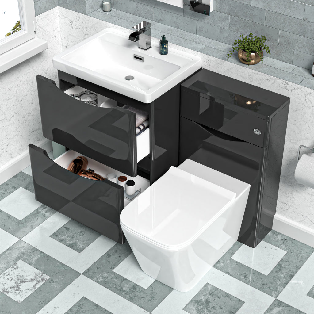 {"id":14963175817592,"title":"Merton Dark Grey 600mm Freestanding Basin Vanity WC Unit \u0026 Square BTW Toilet","handle":"merton-dark-grey-600mm-freestanding-basin-vanity-wc-unit-square-btw-toilet","description":"\u003cp\u003eThe Freestanding Basin Vanity Cabinet unit is an elegant and functional piece of bathroom furniture that is designed to provide ample storage space while also offering a sleek, modern aesthetic. This cabinet is made from moisture-resistant materials, ensuring that it will remain in excellent condition even in high-humidity environments. The Back-to-wall toilet is made from high-quality ceramic. This set is an ideal choice for those looking to update their bathroom with a stylish and functional vanity cabinet, water closet unit and toilet. This product comes with a 10 year manufacturer's warranty.\u003c\/p\u003e\n\n\u003cp\u003e\u003cb\u003eKey Features\u003c\/b\u003e\u003c\/p\u003e\n\u003cul\u003e\n\u003cli\u003eThis design is perfect for renewing the style in any modern or traditional bathrooms where space is limited\u003c\/li\u003e\n\u003cli\u003eIt's stylish modern design hides all unsightly pipework creating a neat modern look \u003c\/li\u003e\n\u003cli\u003eWater resistant MDF construction for the vanity and wc unit\u003c\/li\u003e\n\u003cli\u003eFloor mounted vanity unit and basin for elegant design and extra storage space\u003c\/li\u003e\n\u003cli\u003eHigh gloss glaze dark grey finish back-to-wall toilet with soft close seat\u003c\/li\u003e\n\u003cli\u003e10 year manufacturer's guarantee\u003c\/li\u003e \n\u003c\/ul\u003e\n\n\u003cdiv class=\"row specification s5\"\u003e\n \u003cdiv class=\"spec\"\u003e\n \u003cp\u003e\u003cb\u003eBasin Vanity Cabinet Unit\u003c\/b\u003e\u003c\/p\u003e\n \u003cul\u003e\n \u003cli\u003eStyle: Contemporary\u003c\/li\u003e\n \u003cli\u003eColour: Gloss Dark Grey\u003c\/li\u003e\n \u003cli\u003eHeight: 850mm\u003c\/li\u003e\n \u003cli\u003eWidth: 600mm\u003c\/li\u003e\n \u003cli\u003eDepth: 450mm\u003c\/li\u003e\n \u003cli\u003eUnit Type: 2 drawers unit\u003c\/li\u003e\n \u003cli\u003eMaterial: MDF\u003c\/li\u003e\n \u003cli\u003eHandles: No\u003c\/li\u003e\n \u003cli\u003eDoor Hinges: Soft close\u003c\/li\u003e\n \u003cli\u003eDrawer Runners: Yes\u003c\/li\u003e\n \u003cli\u003eBasin Included: Yes\u003c\/li\u003e\n \u003cli\u003eTap Hole: Single\u003c\/li\u003e\n \u003cli\u003eOverflow: Yes\u003c\/li\u003e\n \u003cli\u003eMounting Type: Freestanding\u003c\/li\u003e\n \u003cli\u003eSupplied: Assembled\u003c\/li\u003e\n \u003c\/ul\u003e\n \u003c\/div\u003e\n \u003cdiv class=\"spec\"\u003e\n \u003cstrong\u003e\u003c\/strong\u003e\n \u003cp\u003e\u003cb\u003eToilet\u003c\/b\u003e\u003c\/p\u003e\n \u003cul\u003e\n\u003cli\u003eHeight: 400 mm\u003c\/li\u003e\n\u003cli\u003eWidth: 345 mm\u003c\/li\u003e\n\u003cli\u003eProjection: 560 mm\u003c\/li\u003e\n\u003cli\u003eColour: White\u003c\/li\u003e\n\u003cli\u003eMaterial: Ceramic\u003c\/li\u003e\n\u003cli\u003eSuitable for domestic and commercial use\u003c\/li\u003e\n\u003c\/ul\u003e\n \u003c\/div\u003e\n \u003cdiv class=\"spec\"\u003e\n \u003cp\u003e\u003cb\u003eWC Unit\u003c\/b\u003e\u003c\/p\u003e\n \u003cul\u003e\n\u003cli\u003eStyle: Contemporary\u003c\/li\u003e\n\u003cli\u003eColour: Gloss Dark Grey\u003c\/li\u003e\n\u003cli\u003eHeight: 795mm\u003c\/li\u003e\n\u003cli\u003eWidth: 500mm\u003c\/li\u003e\n\u003cli\u003eDepth: 205mm\u003c\/li\u003e\n\u003cli\u003eUnit Type: Back To Wall Unit\u003c\/li\u003e\n\u003cli\u003eMaterial: MDF\u003c\/li\u003e\n\u003cli\u003eMounting Type: Freestanding\u003c\/li\u003e\n\u003cli\u003eShape: Rectangle\u003c\/li\u003e\n\u003cli\u003eComes with Cistern internals\u003c\/li\u003e\n\u003cli\u003eSupplied: Assembled\u003c\/li\u003e\n\u003c\/ul\u003e\n\u003cdiv\u003e \u003c\/div\u003e\n \u003c\/div\u003e\n \u003cdiv class=\"spec\"\u003e\n \u003cp\u003e\u003cb\u003eCistern\u003c\/b\u003e\u003c\/p\u003e\n\u003cp\u003e\n \u003c\/p\u003e\n\u003cul\u003e\n\u003cli\u003eWidth: 335 mm\u003c\/li\u003e\n\u003cli\u003eProjection: 140 mm\u003c\/li\u003e\n\u003cli\u003eHeight: 290 mm\u003c\/li\u003e\n\u003cli\u003eStrong and durable\u003c\/li\u003e\n\u003cli\u003eCable concealed dual flush\u003c\/li\u003e\n\u003cli\u003eUniversal access for maintenance\u003c\/li\u003e\n\u003cli\u003eDual flush, 6 litre full flush, 4 litre half flush\u003c\/li\u003e\n\u003cli\u003eChrome finished dual flush button\u003c\/li\u003e\n\u003cli\u003eInternal Overflow\u003c\/li\u003e\n\u003cli\u003eSimple installation\u003c\/li\u003e\n\u003cli\u003eButton is NOT Fixed and can be moved and attached to furniture accordingly\u003c\/li\u003e\n\u003cli\u003eWater inlet underneath\u003c\/li\u003e\n\u003cli\u003eCable from the cistern to the button is 450mm\u003c\/li\u003e\n\u003cli\u003eWRAS Approved Product\u003c\/li\u003e\n\u003c\/ul\u003e\n\u003cdiv\u003e \u003c\/div\u003e\n \u003c\/div\u003e\n \u003c\/div\u003e\n \u003cdiv class=\"spec\"\u003e\n \u003cp\u003e\u003cb\u003ePackage Contents\u003c\/b\u003e\u003c\/p\u003e\n \u003cul\u003e\n \u003cli\u003eBasin\u003c\/li\u003e\n \u003cli\u003eVanity Unit\u003c\/li\u003e\n \u003cli\u003eWC Unit\u003c\/li\u003e\n \u003cli\u003eCistern and Cistern Internal Fittings\u003c\/li\u003e\n \u003cli\u003eToilet Pan and Pan Fittings\u003c\/li\u003e\n \u003cli\u003eSoft closed toilet seat\u003c\/li\u003e\n \u003cli\u003e\n\u003cb style=\"color: red;\"\u003ePlease Note:\u003c\/b\u003e Tap \u0026amp; Waste are sold separately\u003c\/li\u003e\n \u003c\/ul\u003e\n \u003c\/div\u003e","published_at":"2025-09-08T16:31:27+01:00","created_at":"2025-09-08T16:31:22+01:00","vendor":"Nes Home","type":"Suite - Basin \u0026 Toilet - Vanity \u0026 WC Unit","tags":["back to wall","dark grey","drawers","freestanding","projection:450","suites","vanity basin","vanity toilet combo","width:610"],"price":40999,"price_min":40999,"price_max":40999,"available":false,"price_varies":false,"compare_at_price":null,"compare_at_price_min":0,"compare_at_price_max":0,"compare_at_price_var