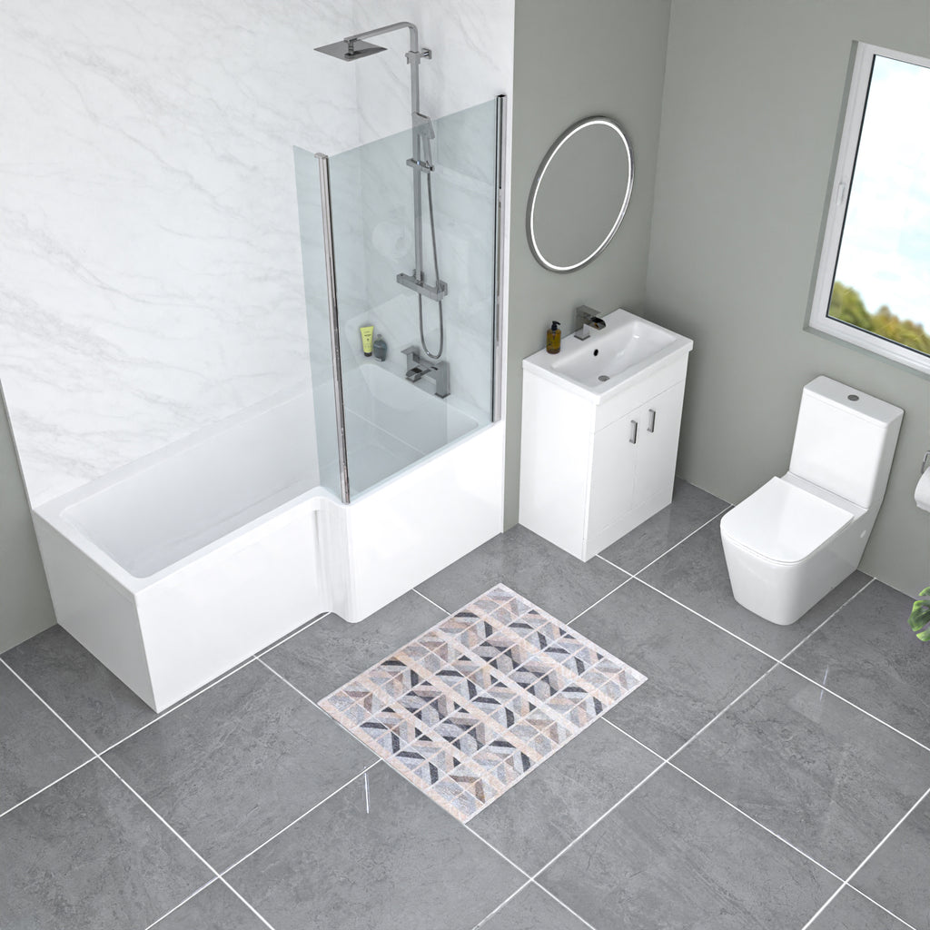 {"id":14834693767544,"title":"Nanuya L-Shaped RH Bath Front Panel White Basin Vanity Toilet Tap \u0026 Shower Set","handle":"nanuya-l-shaped-rh-bath-front-panel-white-basin-vanity-toilet-tap-shower-set","description":"\u003cp\u003eUpgrade your bathroom with our L-Shaped Right Handed Bath Set. It includes a 600mm Floor Standing White Basin Vanity with Taps and Toilet for a seamless, modern look. The exposed shower adds a contemporary touch. Enjoy style and functionality in one complete package.\u003c\/p\u003e\n\n\u003cul\u003e\n \u003cli\u003e\n L-Shaped Design: Maximizes bathing space while optimizing floor layout for a\n comfortable soak.\n \u003c\/li\u003e\n \u003cli\u003e\n 600mm Floor Standing Vanity: Offers ample storage and a clean, modern\n aesthetic for your bathroom essentials.\n \u003c\/li\u003e\n \u003cli\u003e\n Taps Included: Stylish and water-efficient taps are provided for added\n convenience.\n \u003c\/li\u003e\n \u003cli\u003e\n Back-to-Wall Toilet: Neatly fits against the wall, saving space and\n providing a sleek, contemporary look.\n \u003c\/li\u003e\n \u003cli\u003e\n Exposed Shower: Adds a modern touch and delivers a refreshing bathing\n experience.\n \u003c\/li\u003e\n\u003c\/ul\u003e\n\n\n\u003cdiv class=\"row specification s9\"\u003e\n \u003cdiv class=\"spec\"\u003e\n \u003cp\u003e\u003cb\u003eL Shaped Bath\u003c\/b\u003e\u003c\/p\u003e\n\u003cp\u003e\n \u003c\/p\u003e\n\u003cul\u003e\n\u003cli\u003eRight Hand Shower Bath\u003c\/li\u003e\n\u003cli\u003eLength: 1700mm\u003c\/li\u003e\n\u003cli\u003eWidth: 700mm\u003c\/li\u003e\n\u003cli\u003eWidth at widest L point: 850mm\u003c\/li\u003e\n\u003cli\u003eSupplied with leg set\u003c\/li\u003e\n\u003cli\u003eHigh quality design and build\u003c\/li\u003e\n\u003cli\u003eMaterial: Acrylic\u003c\/li\u003e\n\u003c\/ul\u003e\n\u003cdiv\u003e \u003c\/div\u003e\n \u003c\/div\u003e\n \u003cdiv class=\"spec\"\u003e\n \u003cp\u003e\u003cb\u003eBath Panel\u003c\/b\u003e\u003c\/p\u003e\n\u003cp\u003e\n \u003c\/p\u003e\n\u003cul\u003e\n\u003cli\u003eShape: L\u003c\/li\u003e\n\u003cli\u003eLength: 1700mm\u003c\/li\u003e\n\u003cli\u003eMaterial: Acrylic\u003c\/li\u003e\n\u003c\/ul\u003e\n\u003cdiv\u003e \u003c\/div\u003e\n \u003c\/div\u003e\n \u003cdiv class=\"spec\"\u003e\n \u003cp\u003e\u003cb\u003eBath Screen\u003c\/b\u003e\u003c\/p\u003e\n\u003cp\u003e\n \u003c\/p\u003e\n\u003cul\u003e\n\u003cli\u003eL Shaped Glass Screen\u003c\/li\u003e\n\u003cli\u003e6mm Glass\u003c\/li\u003e\n\u003cli\u003eToughen Safety Glass\u003c\/li\u003e\n\u003c\/ul\u003e\n\u003cdiv\u003e \u003c\/div\u003e\n \u003c\/div\u003e\n \u003cdiv class=\"spec\"\u003e\n \u003cp\u003e\u003cb\u003eVanity Basin Unit\u003c\/b\u003e\u003c\/p\u003e\n\u003cp\u003e\n \u003c\/p\u003e\n\u003cul\u003e\n\u003cli\u003eStyle: Contemporary\u003c\/li\u003e\n\u003cli\u003eHeight: 835 mm\u003c\/li\u003e\n\u003cli\u003eWidth: 610 mm\u003c\/li\u003e\n\u003cli\u003eDepth: 395 mm\u003c\/li\u003e\n\u003cli\u003eMaterial: MDF\u003c\/li\u003e\n\u003cli\u003eHandles: Exposed\u003c\/li\u003e\n\u003cli\u003eDoor Hinges: Soft close\u003c\/li\u003e\n\u003cli\u003eBasin Included: Yes\u003c\/li\u003e\n\u003cli\u003eBasin Finish: White\u003c\/li\u003e\n\u003cli\u003eBasin Material: Ceramic\u003c\/li\u003e\n\u003cli\u003eTap Hole: Single\u003c\/li\u003e\n\u003cli\u003eOverflow: Yes\u003c\/li\u003e\n\u003cli\u003eMounting Type: Free standing\u003c\/li\u003e\n\u003c\/ul\u003e\n\u003cdiv\u003e \u003c\/div\u003e\n \u003c\/div\u003e\n \u003cdiv class=\"spec\"\u003e\n \u003cp\u003e\u003cb\u003eToilet\u003c\/b\u003e\u003c\/p\u003e\n\u003cp\u003e\n \u003c\/p\u003e\n\u003cul\u003e\n\u003cli\u003eColour: White\u003c\/li\u003e\n\u003cli\u003eCistern flush: 3\/6 litres dual flush\u003c\/li\u003e\n\u003cli\u003eCistern overflow: internal\u003c\/li\u003e\n\u003cli\u003eSeat type: Soft close seat\u003c\/li\u003e\n\u003cli\u003eHeight: 800mm\u003c\/li\u003e\n\u003cli\u003eProjection: 645mm\u003c\/li\u003e\n\u003cli\u003eWidth: 360mm\u003c\/li\u003e\n\u003c\/ul\u003e\n\u003cdiv\u003e \u003c\/div\u003e\n \u003c\/div\u003e\n \u003cdiv class=\"spec\"\u003e\n \u003cp\u003e\u003cb\u003eBath Filler\u003c\/b\u003e\u003c\/p\u003e\n\u003cp\u003e\n \u003c\/p\u003e\n\u003cul\u003e\n\u003cli\u003eMaterial- Brass\u003c\/li\u003e\n\u003cli\u003eStyle: Modern\u003c\/li\u003e\n\u003cli\u003eFinish: Highly polished chrome\u003c\/li\u003e\n\u003cli\u003e2 Tap holes\u003c\/li\u003e\n\u003cli\u003eWaste Included\u003c\/li\u003e\n\u003cli\u003eMinimum pressure: 0.2 bar\u003c\/li\u003e\n\u003cli\u003eRecommended pressure: 1 bar\u003c\/li\u003e\n\u003c\/ul\u003e\n\u003cdiv\u003e \u003c\/div\u003e\n \u003c\/div\u003e\n \u003cdiv class=\"spec\"\u003e\n \u003cp\u003e\u003cb\u003eBasin Mono Mixer\u003c\/b\u003e\u003c\/p\u003e\n\u003cp\u003e\n \u003c\/p\u003e\n\u003cul\u003e\n\u003cli\u003eSingle lever handle: controls both temperature and flow\u003c\/li\u003e\n\u003cli\u003e1\/4 turn ceramic disc technology\u003c\/li\u003e\n\u003cli\u003eMaterial- Brass\u003c\/li\u003e\n\u003cli\u003eStyle: Waterfall\u003c\/li\u003e\n\u003cli\u003eFinish: Highly polished chrome\u003c\/li\u003e\n\u003cli\u003eDeck Mounted\u003c\/li\u003e\n\u003cli\u003eMinimum pressure: 0.5 bar\u003c\/li\u003e\n\u003cli\u003eRecommended pressure: 1 bar\u003c\/li\u003e\n\u003c\/ul\u003e\n\u003cdiv\u003e \u003c\/div\u003e\n \u003c\/div\u003e\n \u003cdiv class=\"spec\"\u003e\n \u003cp\u003e\u003cb\u003eThermostatic Mixer Shower Set With Shower Head And Handheld\u003c\/b\u003e\u003c\/p\u003e\n\u003cp\u003e\n \u003c\/p\u003e\n\u003cul\u003e\n\u003cli\u003eValve: Brass construction\u003c\/li\u003e\n\u003cli\u003eAnti-scalding: Built in device\u003c\/li\u003e\n\u003cli\u003eChild friendly: Anti-scalding device\u003c\/li\u003e\n\u003cli\u003eTemperature range: 20-50 degrees C\u003c\/li\u003e\n\u003cli\u003eDual control: Thermostatic and water-flow\u003c\/li\u003e\n\u003cli\u003eFinish: Highly polished 3-layer PVD\u003c\/li\u003e\n\u003cli\u003eShowerhead size: 8 inch (200mm)\u003c\/l