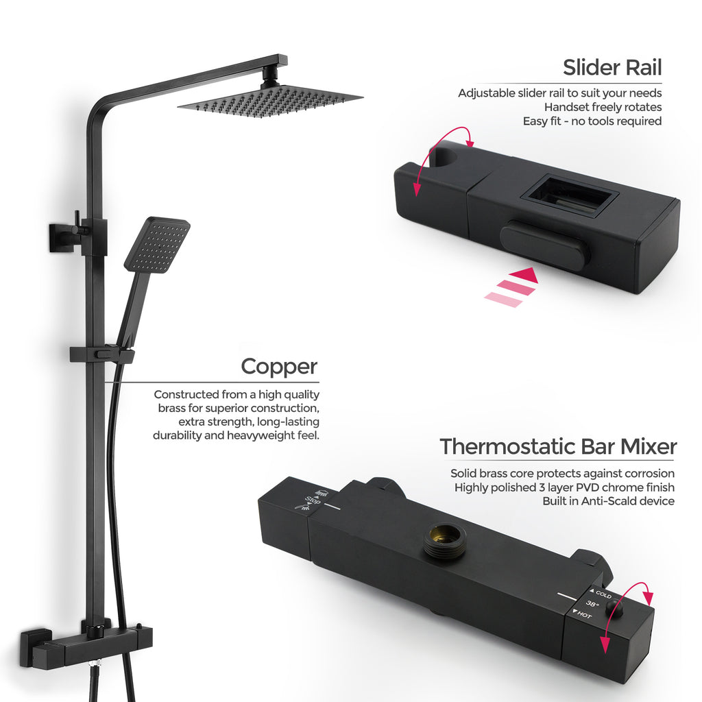 {"id":8093437886688,"title":"Square Bathroom Suite Matt Black 1700mm Bath, Toilet, Pedestal basin, Tap,Shower","handle":"square-bathroom-suite-matt-black-1700mm-bath-toilet-pedestal-basin-matt-black-taps-matt-black-shower","description":"\u003cp\u003eIntroducing our stunning Square Bathroom Suite, a modern and sophisticated choice for your bathroom. With its 1700mm x 700mm bath, shower screen, sleek square pedestal basin and toilet, this suite exudes contemporary elegance. Complete with matching stylish matt black taps with wastes and an exposed thermostatic shower, it's a truly cohesive and eye-catching ensemble. Elevate your bathroom to new heights of sophistication with the Square Bathroom Suite.\u003c\/p\u003e\n\u003cp\u003e \u003c\/p\u003e\n\u003cdiv class=\"row specification s8\"\u003e\n\u003cdiv class=\"spec\"\u003e\n\u003cp\u003e\u003cb\u003e1700mm Bath\u003c\/b\u003e\u003c\/p\u003e\n\u003cp\u003e \u003c\/p\u003e\n\u003cul\u003e\n\u003cli\u003eManufactured from high-quality acrylic for a strong and sturdy finish\u003c\/li\u003e\n\u003cli\u003eLength: 1700mm\u003c\/li\u003e\n\u003cli\u003eWidth: 700mm\u003c\/li\u003e\n\u003cli\u003eDepth: 400mm\u003c\/li\u003e\n\u003cli\u003eBath Type: Standard\u003c\/li\u003e\n\u003cli\u003eBath Shape: Rectangle\u003c\/li\u003e\n\u003cli\u003eWater Capacity: 180L\u003c\/li\u003e\n\u003cli\u003eBath Configuration: Single Ended\u003c\/li\u003e\n\u003c\/ul\u003e\n\u003cdiv\u003e \u003c\/div\u003e\n\u003c\/div\u003e\n\u003cdiv class=\"spec\"\u003e\n\u003cp\u003e\u003cb\u003eBath Screen\u003c\/b\u003e\u003c\/p\u003e\n\u003cp\u003e \u003c\/p\u003e\n\u003cul\u003e\n\u003cli\u003eProfile Finish: Matt\u003c\/li\u003e\n\u003cli\u003eWidth: 800 mm (width adjustments: 790 to 800mm)\u003c\/li\u003e\n\u003cli\u003eHeight: 1400 mm\u003c\/li\u003e\n\u003cli\u003eGlass: Clear\u003c\/li\u003e\n\u003c\/ul\u003e\n\u003cdiv\u003e \u003c\/div\u003e\n\u003c\/div\u003e\n\u003cdiv class=\"spec\"\u003e\n\u003cp\u003e\u003cb\u003eBath Filler\u003c\/b\u003e\u003c\/p\u003e\n\u003cp\u003e \u003c\/p\u003e\n\u003cul\u003e\n\u003cli\u003eMaterial: Brass\u003c\/li\u003e\n\u003cli\u003eStyle: Modern\u003c\/li\u003e\n\u003cli\u003eFinish: Matte black\u003c\/li\u003e\n\u003cli\u003eFitting included: Yes\u003c\/li\u003e\n\u003cli\u003eMounting Type: Deck Mounted\u003c\/li\u003e\n\u003cli\u003eWaste: Included\u003c\/li\u003e\n\u003c\/ul\u003e\n\u003cdiv\u003e \u003c\/div\u003e\n\u003c\/div\u003e\n\u003cdiv class=\"spec\"\u003e\n\u003cp\u003e\u003cb\u003eBasin Tap\u003c\/b\u003e\u003c\/p\u003e\n\u003cp\u003e \u003c\/p\u003e\n\u003cul\u003e\n\u003cli\u003eMatte black finish\u003c\/li\u003e\n\u003cli\u003eSingle lever handle: controls both temperature and flow\u003c\/li\u003e\n\u003cli\u003e1\/4 Turn Ceramic Cartridge\u003c\/li\u003e\n\u003cli\u003eEasy to install; Complete with 350mm braided flexible hoses with 1\/2\" standard fittings\u003c\/li\u003e\n\u003cli\u003eUK standard size fitting\u003c\/li\u003e\n\u003cli\u003eWaste: Included\u003c\/li\u003e\n\u003c\/ul\u003e\n\u003cdiv\u003e \u003c\/div\u003e\n\u003c\/div\u003e\n\u003cdiv class=\"spec\"\u003e\n\u003cp\u003e\u003cb\u003eToilet\u003c\/b\u003e\u003c\/p\u003e\n\u003cp\u003e \u003c\/p\u003e\n\u003cul\u003e\n\u003cli\u003eMaterial: Vitreous china\u003c\/li\u003e\n\u003cli\u003eCistern flush: 3\/6 litres dual flush\u003c\/li\u003e\n\u003cli\u003eCistern overflow: internal\u003c\/li\u003e\n\u003cli\u003eSeat type: Soft close seat\u003c\/li\u003e\n\u003cli\u003eHeight: 780mm\u003c\/li\u003e\n\u003cli\u003eProjection: 600mm\u003c\/li\u003e\n\u003cli\u003eWidth: 365mm\u003c\/li\u003e\n\u003c\/ul\u003e\n\u003cdiv\u003e \u003c\/div\u003e\n\u003c\/div\u003e\n\u003cdiv class=\"spec\"\u003e\n\u003cp\u003e\u003cb\u003ePedestal basin\u003c\/b\u003e\u003c\/p\u003e\n\u003cp\u003e \u003c\/p\u003e\n\u003cul\u003e\n\u003cli\u003eColour: White\u003c\/li\u003e\n\u003cli\u003eMaterial: Vitreous China\u003c\/li\u003e\n\u003cli\u003eTap Hole: 1\u003c\/li\u003e\n\u003cli\u003eBasin Width: 560mm\u003cbr\u003e\n\u003c\/li\u003e\n\u003cli\u003eFull Height: 850mm\u003c\/li\u003e\n\u003cli\u003eProjection: 430mm\u003c\/li\u003e\n\u003cli\u003eHole Width: 45mm\u003c\/li\u003e\n\u003cli\u003ePedestal Width: 165mm\u003c\/li\u003e\n\u003cli\u003ePedestal Type: Full\u003c\/li\u003e\n\u003cli\u003e1 pre-drilled tap hole for a basin mixer tap\u003c\/li\u003e\n\u003c\/ul\u003e\n\u003cdiv\u003e \u003c\/div\u003e\n\u003c\/div\u003e\n\u003cdiv class=\"spec\"\u003e\n\u003cp\u003e\u003cb\u003eBlack Mixer Shower\u003c\/b\u003e\u003c\/p\u003e\n\u003cp\u003e \u003c\/p\u003e\n\u003cul\u003e\n\u003cli\u003eValve: Brass construction\u003c\/li\u003e\n\u003cli\u003eAnti-scalding: Built in device\u003c\/li\u003e\n\u003cli\u003eChild friendly: Anti-scalding device\u003c\/li\u003e\n\u003cli\u003eTemperature range: 20-50 degrees C\u003c\/li\u003e\n\u003cli\u003eDual control: Thermostatic and water-flow\u003c\/li\u003e\n\u003cli\u003eShowerhead size: 8 inch (200mm)\u003c\/li\u003e\n\u003cli\u003eShower head: Matte Black\u003c\/li\u003e\n\u003cli\u003eJoint: Adjustable swivel\u003c\/li\u003e\n\u003cli\u003eSlider rail: Solid brass\u003c\/li\u003e\n\u003cli\u003eAdjustable: Yes\u003c\/li\u003e\n\u003cli\u003eHandset: Matte Black ABS handset\u003c\/li\u003e\n\u003cli\u003eHose: 1.5m\u003c\/li\u003e\n\u003cli\u003eNozzles: Easy clean rubber nozzles\u003c\/li\u003e\n\u003cli\u003eControls: 2\u003c\/li\u003e\n\u003cli\u003eDiverter: Yes\u003c\/li\u003e\n\u003cli\u003eFittings: Yes\u003c\/li\u003e\n\u003cli\u003eSizing: UK standard size\u003c\/li\u003e\n\u003c\/ul\u003e\n\u003cdiv\u003e \u003c\/div\u003e\n\u003c\/div\u003e\n\u003cdiv class=\"spec\"\u003e\n\u003cp\u003e\u003cb\u003ePackage Contents\u003c\/b\u003e\u003c\/p\u003e\n\u003cp\u003e \u003c\/p\u003e\n\u003cul\u003e\n\u003cli\u003e1 x Full Pedestal Basin\u003c\/li\u003e\n\u003cli\u003e1 x 1700mm bath\u003c\/li\u003e\n\u003cli\u003e1 x Toilet\u003c\/li\u003e\n\u003cli\u003e1 x Exposed Thermostatic Mixer Shower Set\u003c\/li\u003e\n\u0